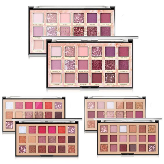 Παλέτα 18 χρωμάτων σκιές ματιών με ανάμεικτες μεταλλικές και ματ αποχρώσεις, σε υψηλής ποιότητας συσκευασία από σκληρό, πεπιεσμένο χαρτόνι. Χρώματα με διάρκεια που θα φωτίσουν και θα ζωντανέψουν το πρόσωπό σας. Σας επιτρέπει να δημιουργήσετε εύκολα ένα λαμπερό φινίρισμα στο μακιγιάζ σας. Θα τη βρείτε σε 3 διαφορετικούς χρωματικούς συνδυασμούς.